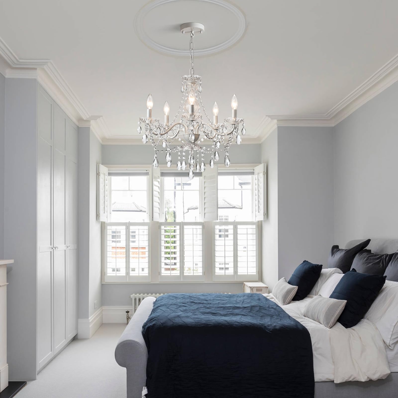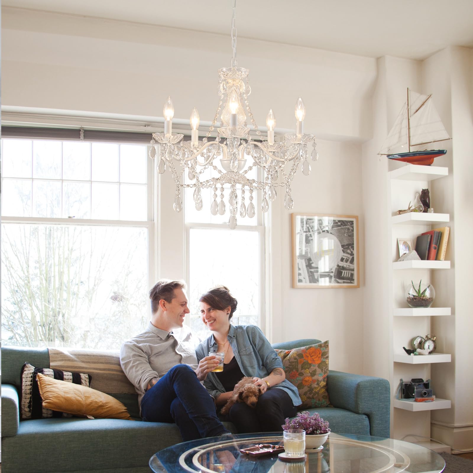 • 👧Easy to assemble: You just need to adjust the mechanical arm of the ceramic plug in white crystal chandelier, install the decorative crystal pendant, adjust the height of the white crystal chandelier and put down the wires, it is very simple, it can be done directly without an electrician (you can watch the video installation), and it is compatible with dimmer switches.