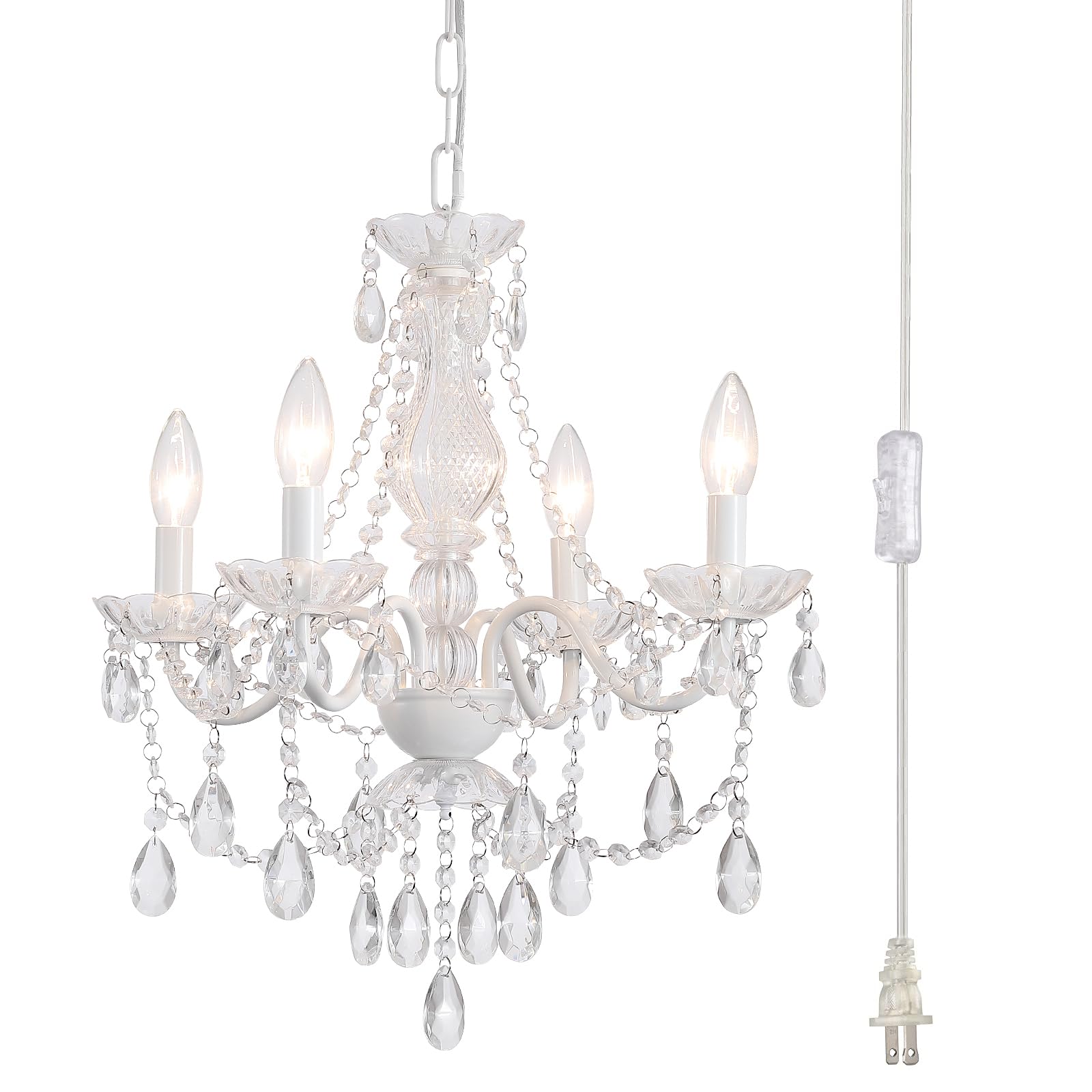 Plug in Crystal Ceramic White Chandelier, Glass Chandeliers,White crystal Hanging Pendant Light with Clear Cord and On/Off, 4 Light Crystal Chandelier for wedding, Kitchen, Dining,Foyer, Mini room