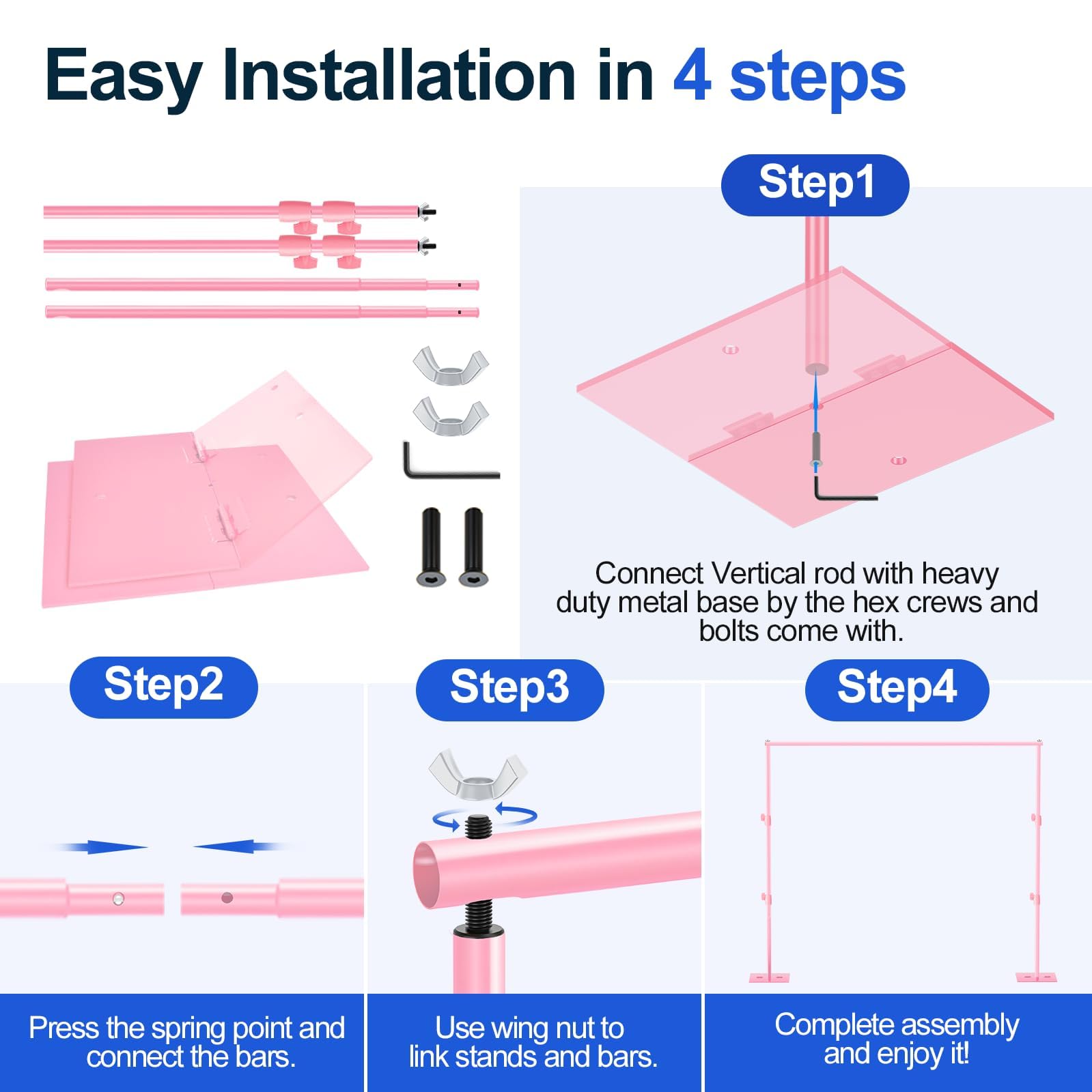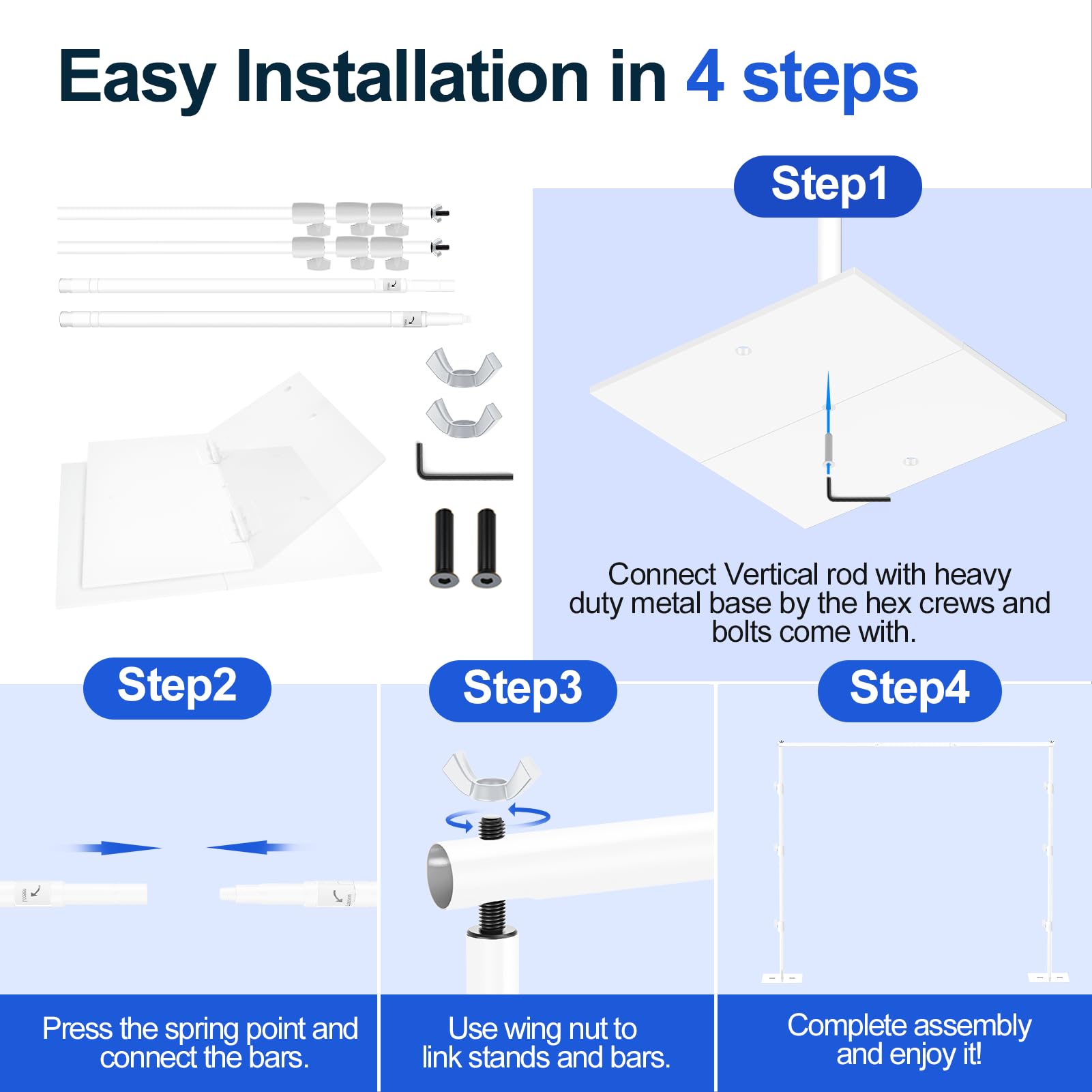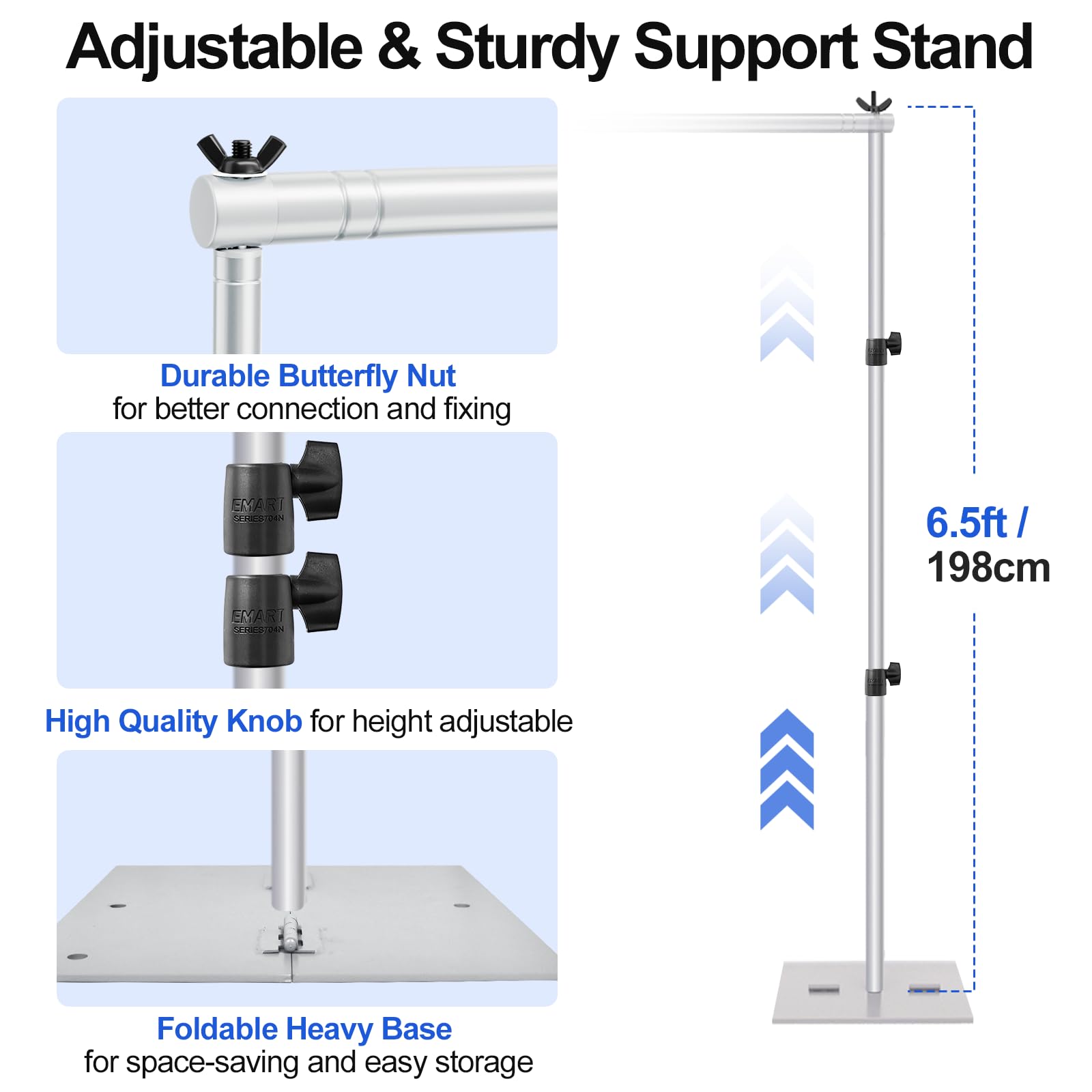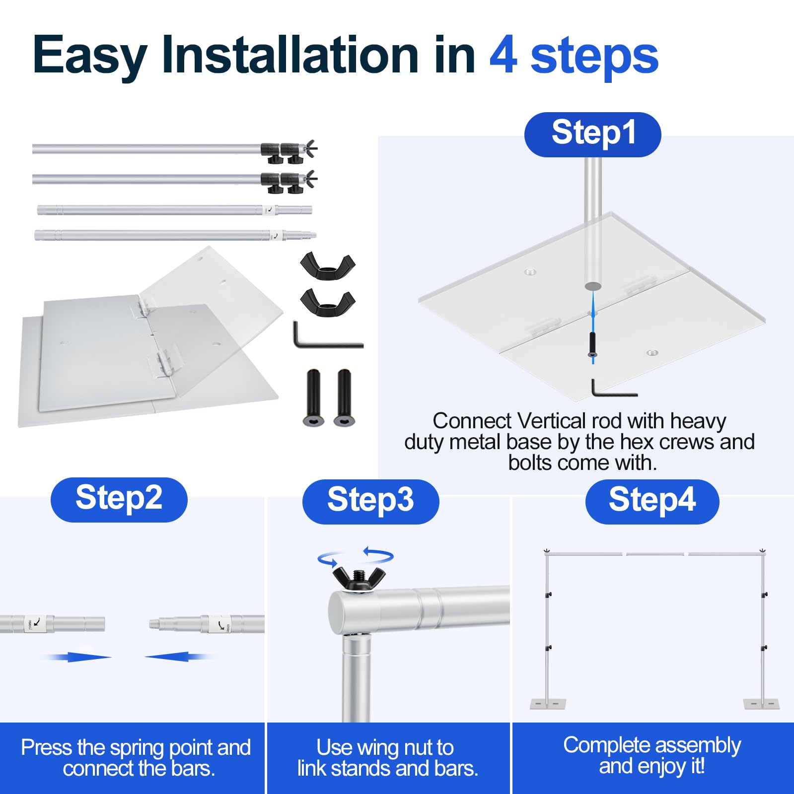 • 【Convenient Assembly】 The metal background support stand is easy to install and can be quickly assembled in a few minutes. Before installing, refer to the instruction manual or installation video on the product page to learn how to complete the installation correctly and quickly.