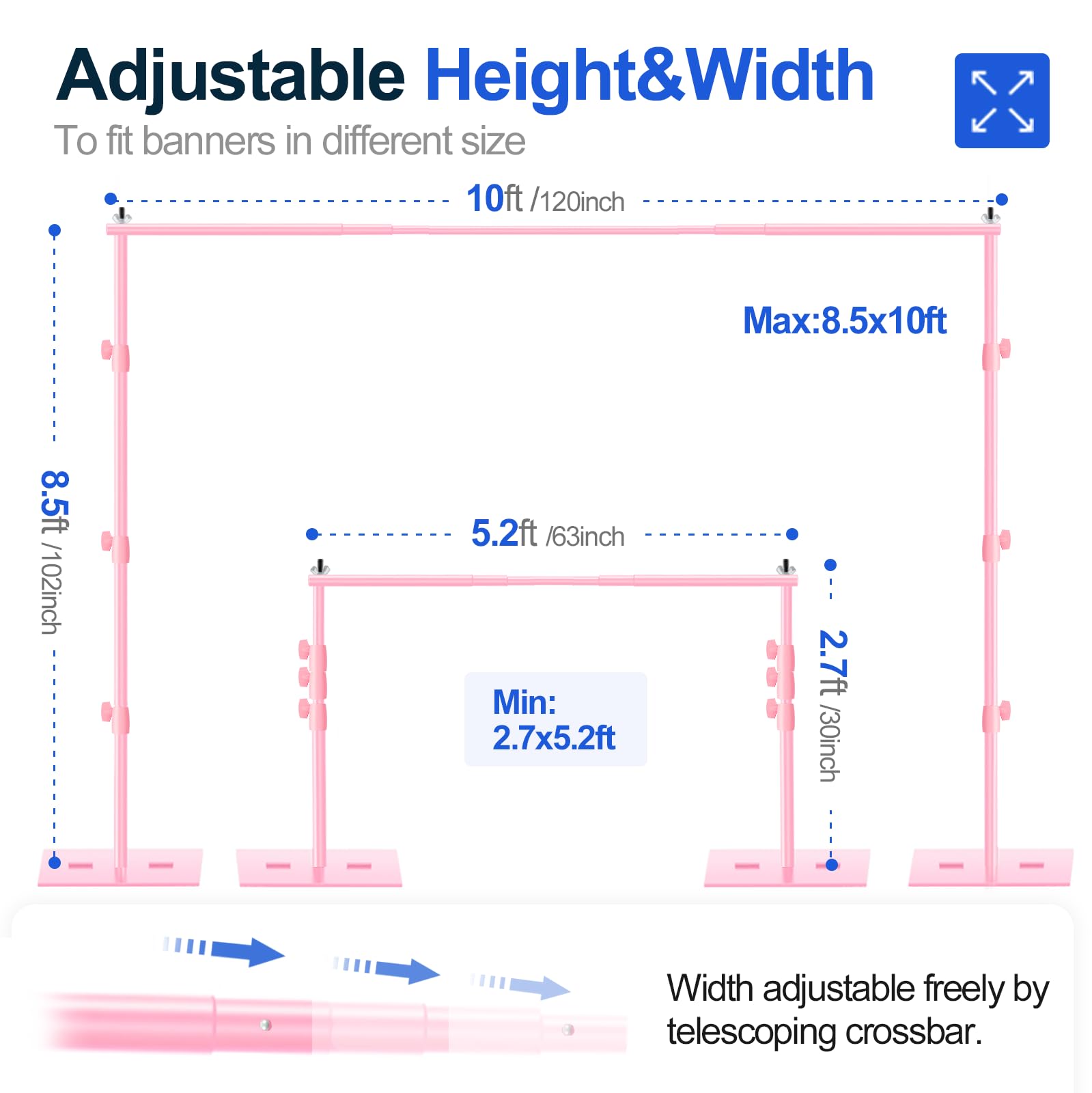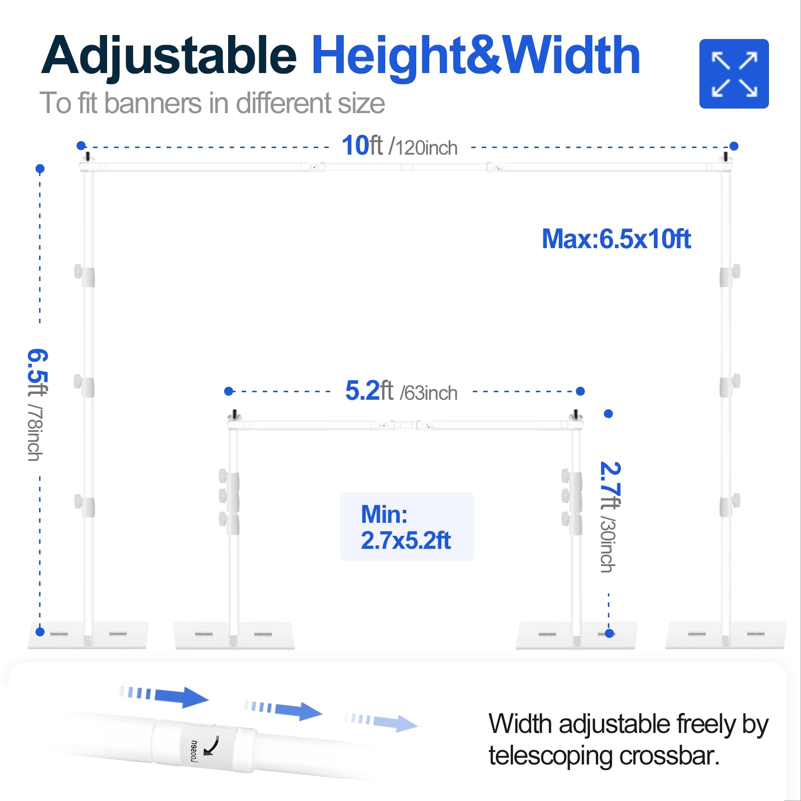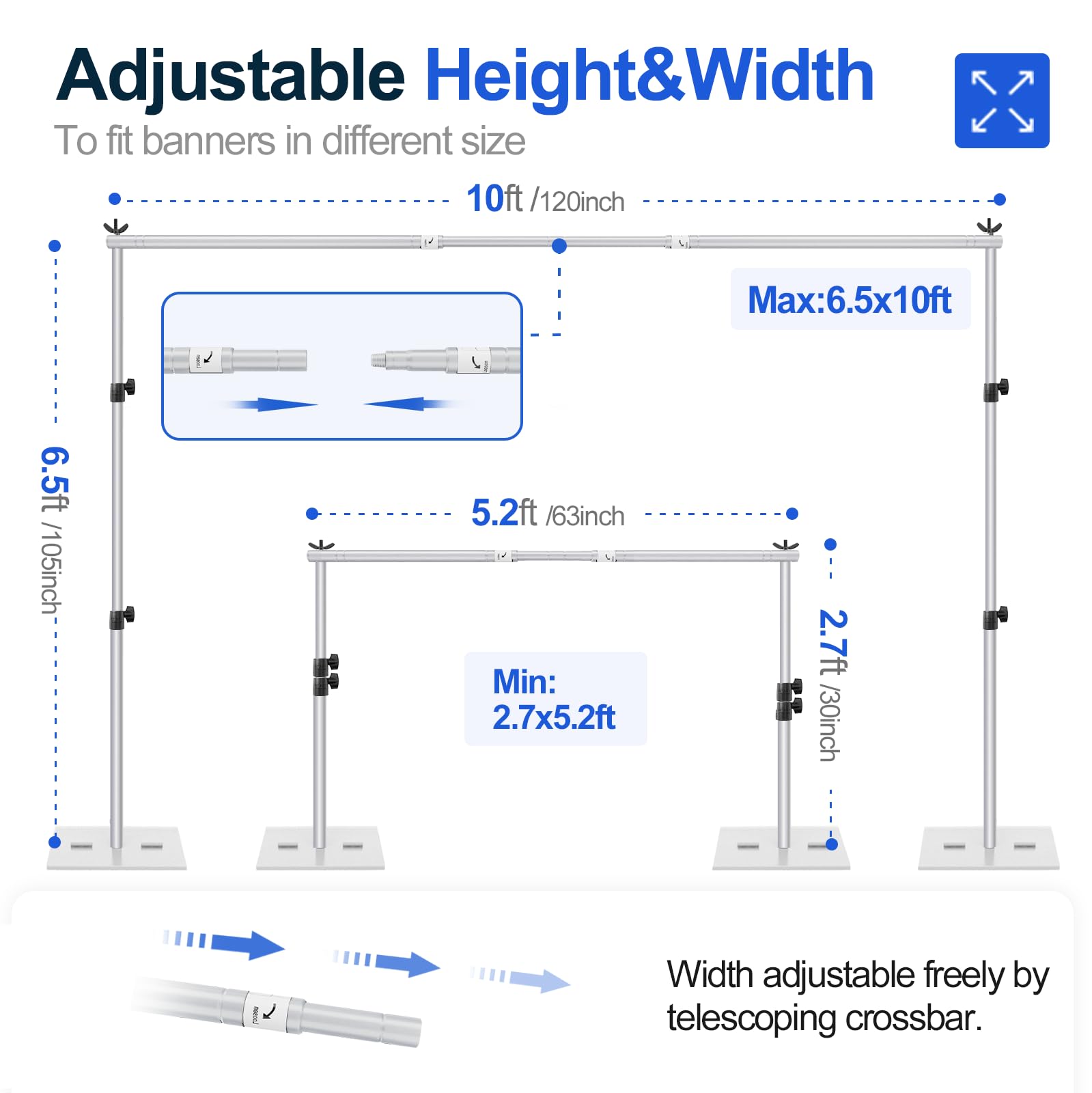 • 【Retractable Crossbar】 The telescopic design is adopted to make the width of the cross bar easily adjustable. The minimum width is 63inch/5.3ft, and the maximum width is 120inch/10ft. It can adapt to backdrops of different sizes. Refer to the product manual for specific dimensions and installation.