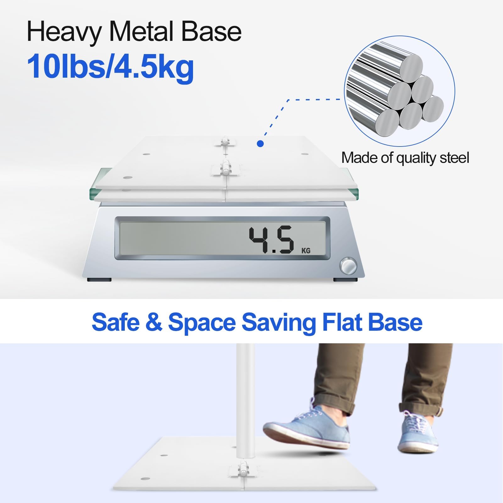 • 【Heavy Flat Metal Base】 The base is made of good quality iron.And the large contact area as well as the weight ensure the stable support. Meanwhile, the flat base can avoid the exposure of stand.